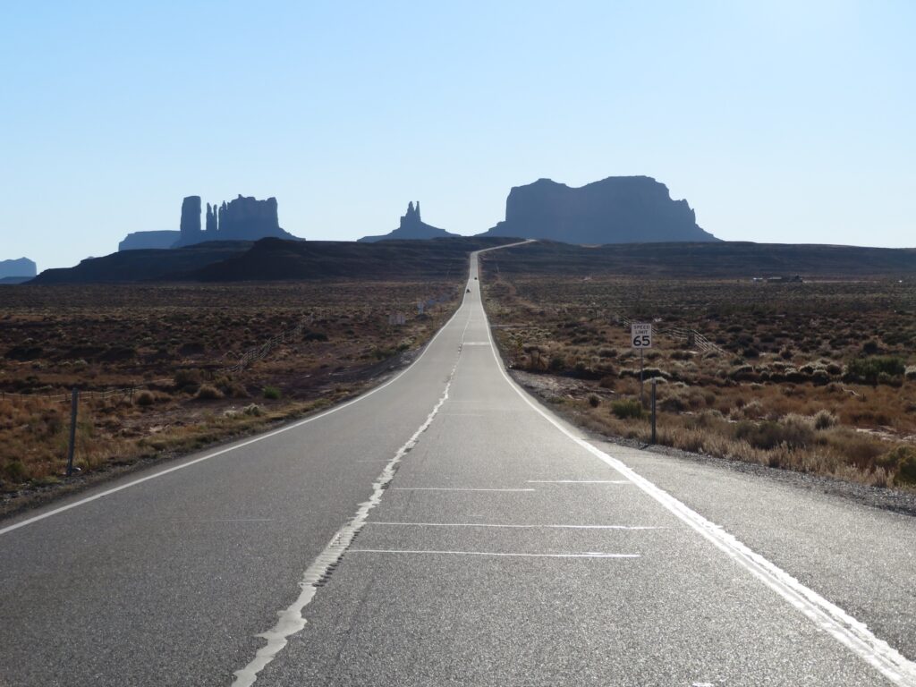 エンジンの鼓動とギターのリフが重なる。古いロックを聴きながら、アメリカ西部の一本道をひた走る。(撮影:筆者)