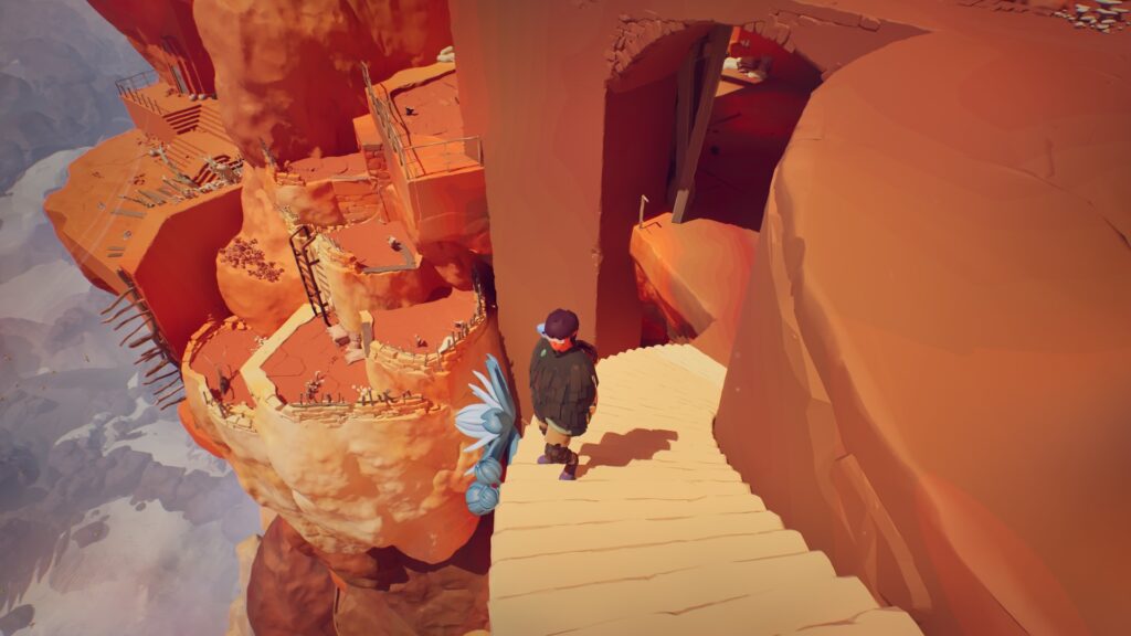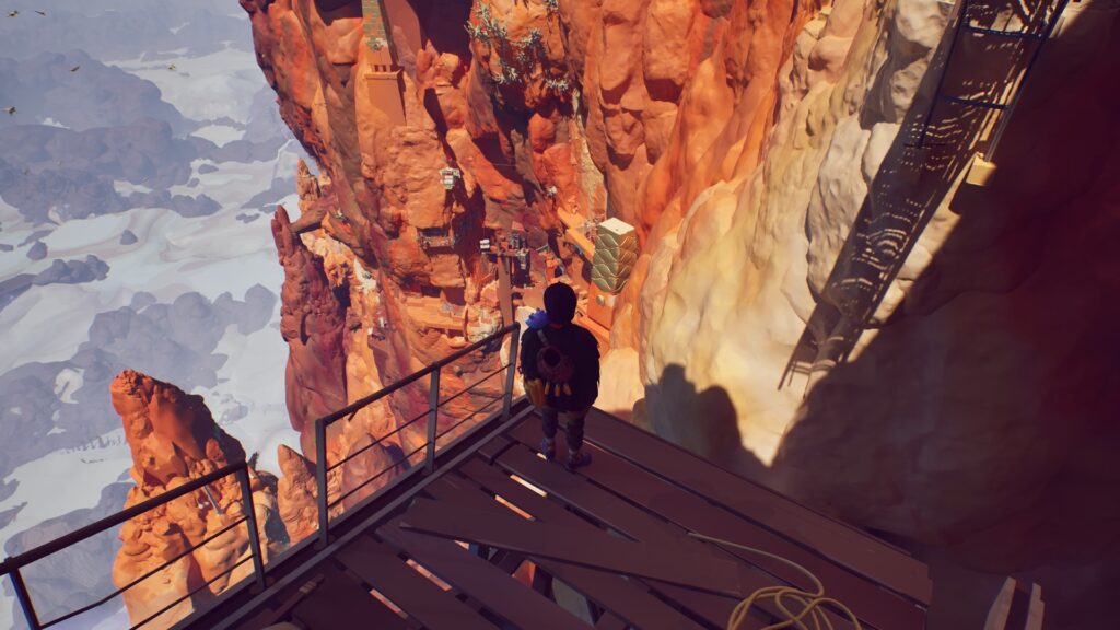 『Jusant』より:アメリカ西部の大峡谷を思わせる、乾いた色彩と規模感。塔の内部へも複雑に広がる地形が、探索の深みを感じさせてくれる。 © DON’T NOD / Focus Entertainment