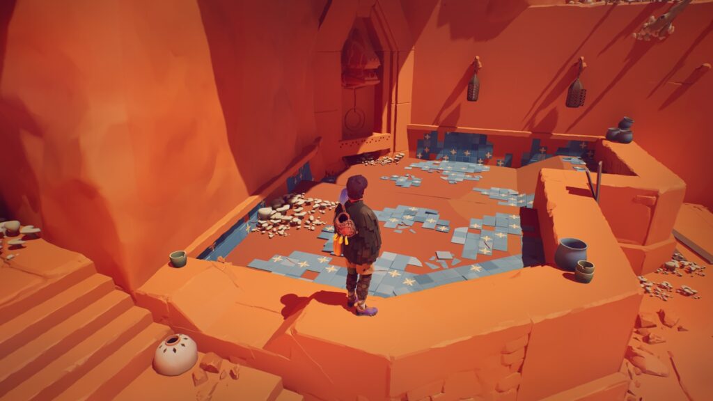 『Jusant』より:コミュニティの中心にあったであろう水場の跡。今では乾ききった床と水瓶だけが、そこに水があった記憶を留めている。 © DON’T NOD / Focus Entertainment