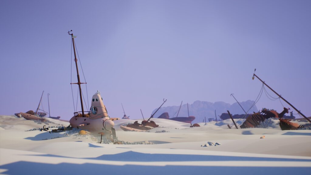 舞台は地球ではないが、赤茶けた地形や広大な空間は、どこか『Jusant』でも感じたアメリカ西部の荒野を思わせる。