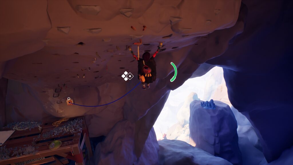 本作では、常にロープによって安全が確保される仕組みになっており、失敗によって大きくやり直しになるようなストレスは抑えられている。