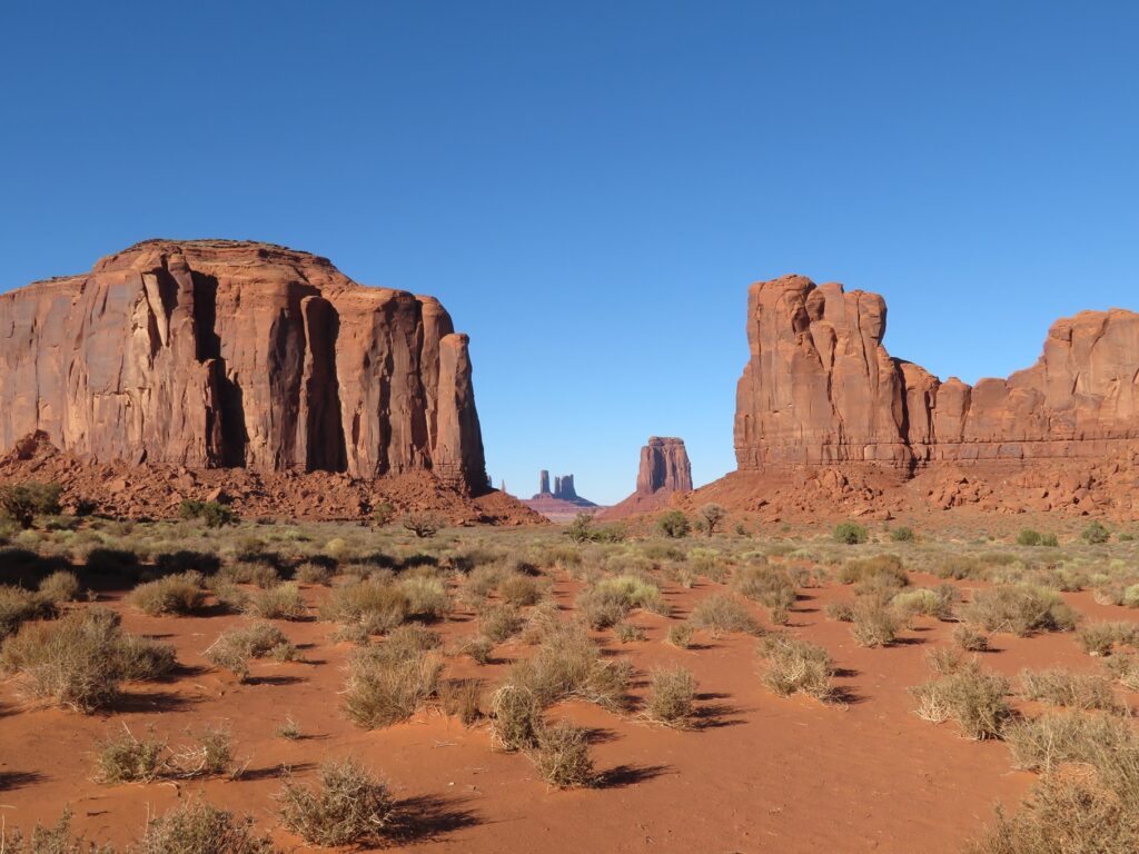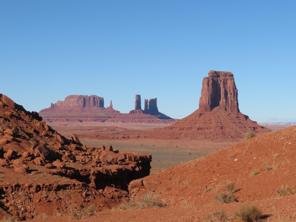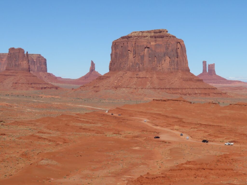 最初に現れるのは、三大ビュート(ミトン・ビュートなど)。その後、ジョン・フォード・ポイント(John Ford’s Point)やスリーシスターズ(Three Sisters)など、映画のワンシーンのような景観が次々と姿を現す。