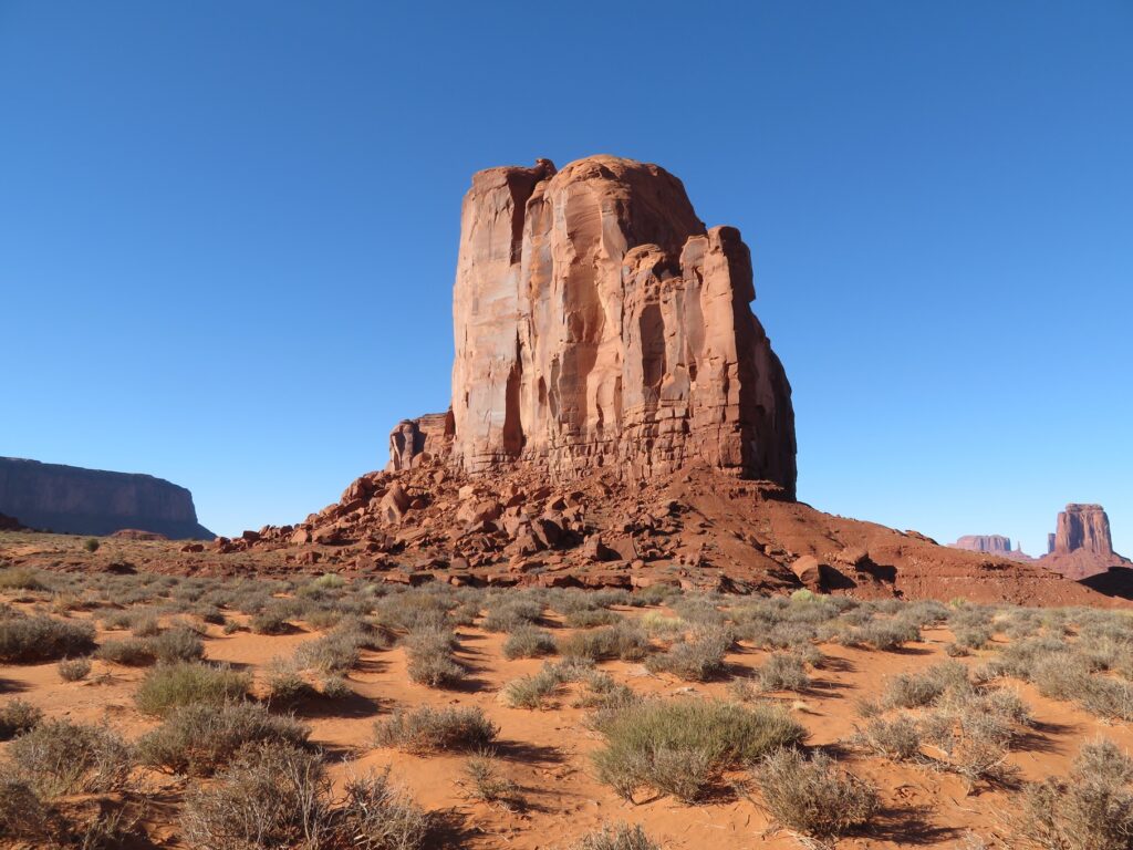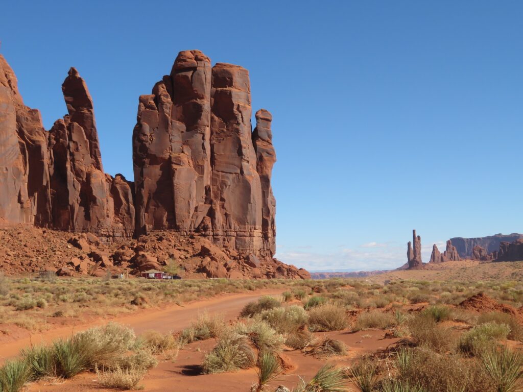 モニュメントバレーの魅力は、まず何よりも、荒野の静けさと対照的に立ち上がる巨岩の迫力にある。