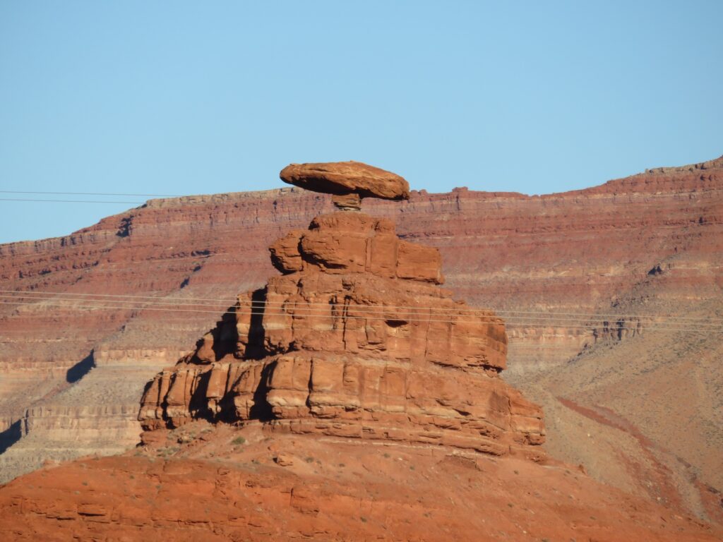 巨大な岩が帽子のように岩山の上に載る奇岩・メキシカン・ハット(Mexican Hat)。ユタ州の小さな町の名の由来にもなっている。(撮影:筆者)