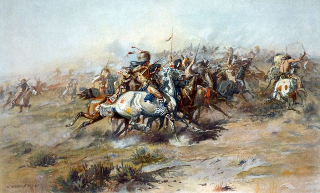 『カスターの戦い』(1903年、チャールズ・ラッセル作)。リトルビッグホーンの激闘を描いた歴史画。(Canva素材より)