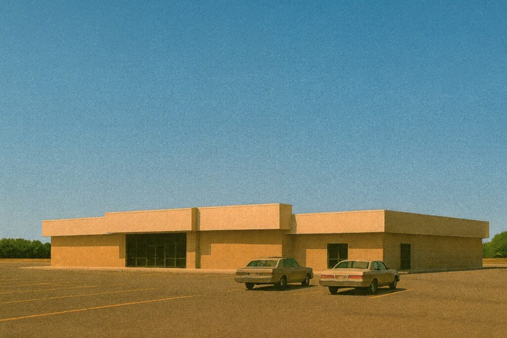 さらに言えば、こうした装飾の少ない空間は、アメリカ的な風景全体に広がってきた特徴でもある。西部劇の町並み、郊外住宅の均質性、大量生産の建物群──いずれも過剰な演出を避け、機能を優先することで成立している。